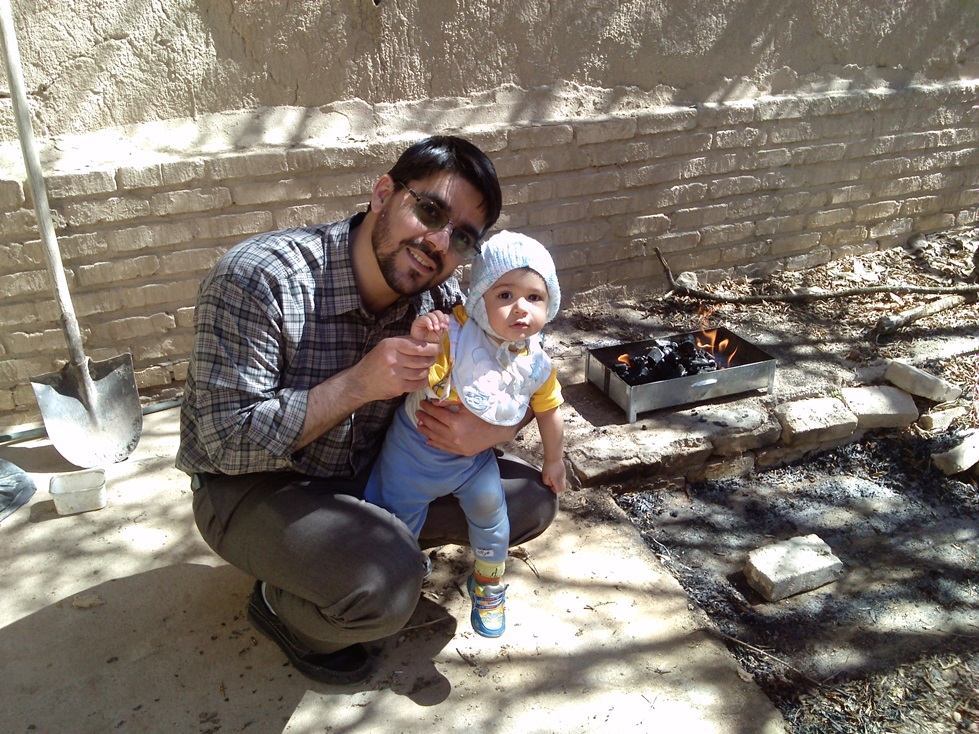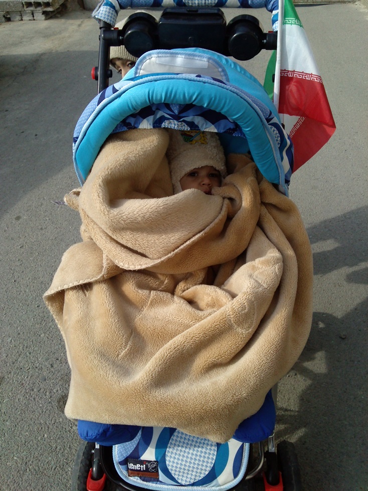 صبح روز جمعه قرار شد بریم ده رشکوئیه. تا راه بیفتیم به ظهر خوردیم و وقتی رسیدیم اونجا شما خواب بودی. ما رفتیم امامزاده و سر خاک مادربزرگ من که یک سال و نیم پیش وفات کرد و من این مدت بخاطر شما نتونسته بودم برم. بعد رفتیم به خونه ی قدیمی پدربزرگ توی ده که بچگیهای ما اونجا گذشت. توی ایوون خونه زیرانداز انداختیم و آتش درست کردیم و کباب خوردیم. آفتاب ده خیلی سوزاننده است. اما وقتی باد بگیره از سرما میلرزی! طی چند دقیقه بلوز آستین کوتاه شما تبدیل شد به دو سه تا لباس آستین بلند و کلاه.