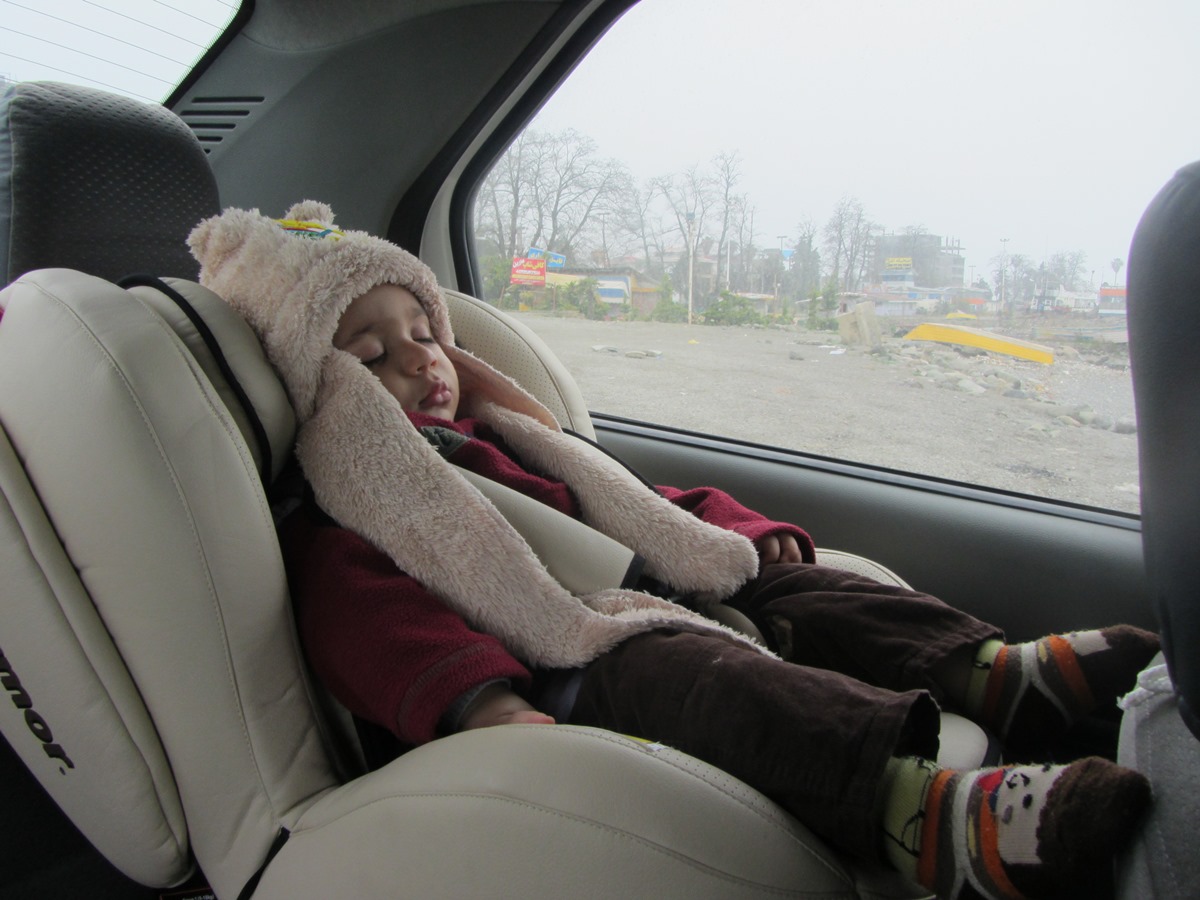 همون شب، شما تب کردی. خاله زهرا میگفت که اونا هم هروقت میرن ده، بچه ها مریض میشن. پوستت هم خیلی خشک شده بود که برات روغن زیتون و کرم نرم کننده زدم. خلاصه شما تا صبح تب داشتی و ما پاشویه میکردیم شما رو. شنبه صبح که می خواستیم راه بیفتیم، تمام صورتت قرمز شد و دونه زد. فکر کردیم که آفتاب سوختگیه. اما این دونه ها همینجوری گسترش پیدا کردن. آبریزش بینی چرک آلود هم داشتی. فکر کردم که سرما خوردی. بعد از نهار راه افتادیم به سمت تهران که مثل برگشت. اول راه کمی خوابیدی و بعد که بیدار شدی دیگه نخوابیدی تا رسیدیم به قم و همون اول شهر خوابت برد. حدود 45 دقیقه ای خوابیدی و بیدار که شدی شروع کردی به بازی کردن.